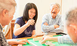 当社が有する介護ノウハウと、認知症予防に関する数多くの研究実績を有する藍野大学との専門知識を掛け合わせ、高齢者の健やかな老いを支援するための多世代交流(クロスエイジ)型プロジェクトを行っています。